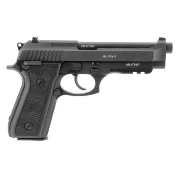 The Taurus PT92 is a full-size, semi-automatic pistol manufactured by Taurus Armas in Brazil. It is a double-action/single-action handgun with a recoil-operated locking system. The model in question is a 9 × 19 mm Parabellum variant with an integrated accessory rail, typically finished in matte black and supplied with two 17-round magazines.